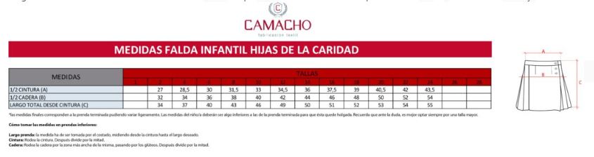 Falda de cuadros para el uniforme homologado de los Centros Educativos Vicencianos, con garantía de fabricación de la marca Camacho uniformes escolares. Falda con tablón delantero y plisado en su parte posterior. Confeccionada en sarga de cuadros de alta calidad, compuesta por lana australiana 45% y poliéster 55% (low pilling – No hace bolas) especialmente ideada para resistir el uso y los lavados diarios sin que se deforme. En 2017 se ha renovado el diseño, incorporando al cierre del tablón delantero 3 botones personalizados en color azulina con el nombre de la Congregación, además de una etiqueta lateral que asegura la autenticidad del modelo. La falda de tablas incorpora tirantes hasta la talla 8. A partir de esta talla el modelo no los incluye.